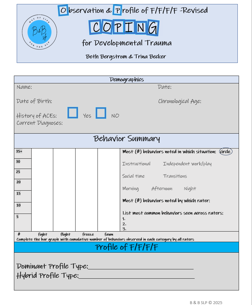 The Observation and Profile Tool for Developmental Trauma - Pack of 10 Forms